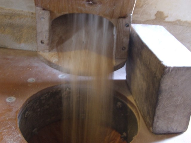 Flour flowing out of the spout during milling day