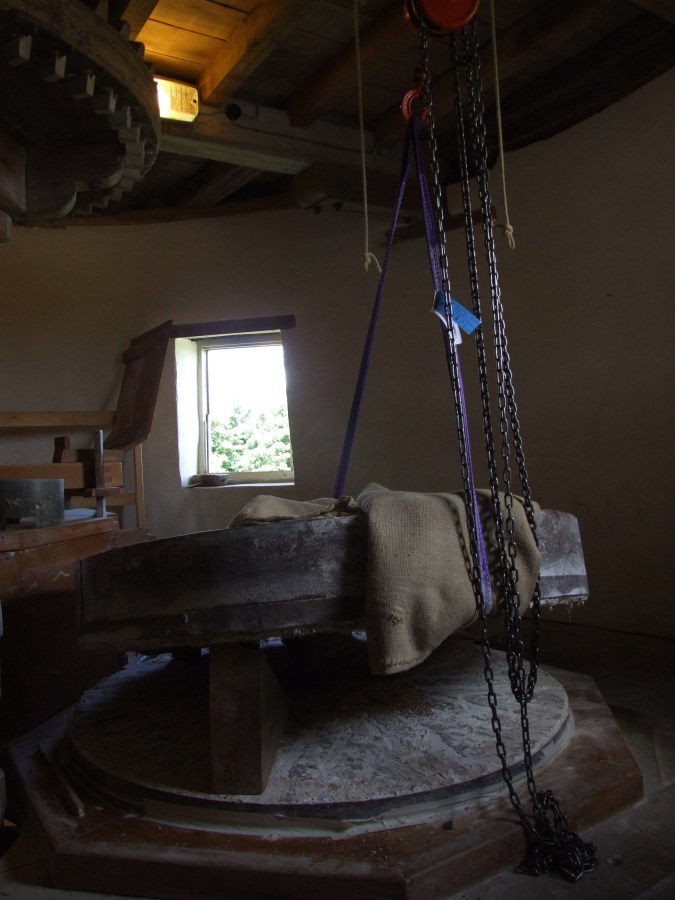 North runner stone being lifted ready for cleaning between stones