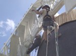 Painting shutters and sails by hanging from ropes