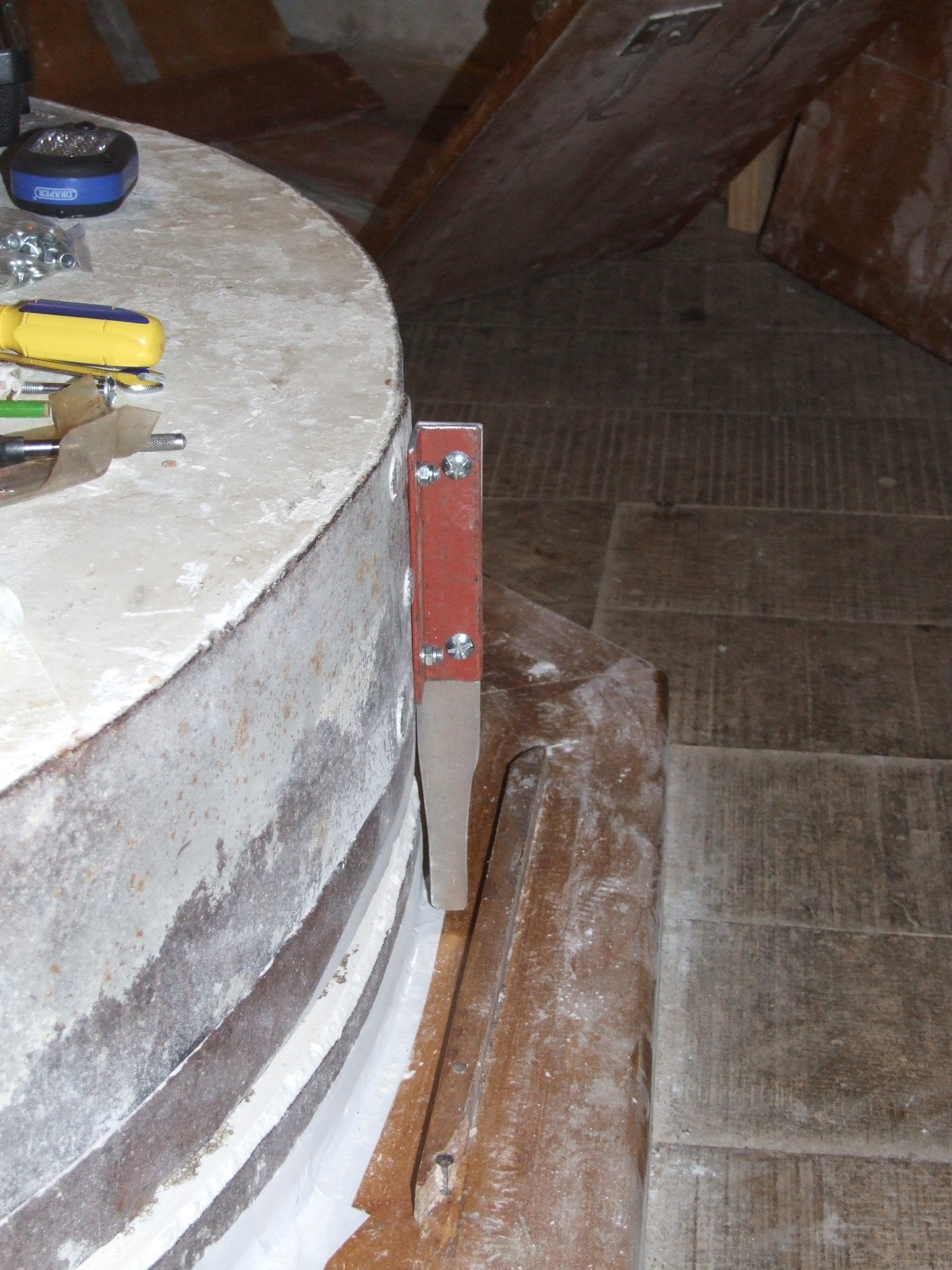 An improved paddle has been fitted to the North runner stone. This has reduced the volume of flour which remains in the vat after milling. This means we fill more bags from a given volume of grain.