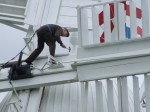 - Chris Hullcoop nailing the bridging plank in position — rather him than me